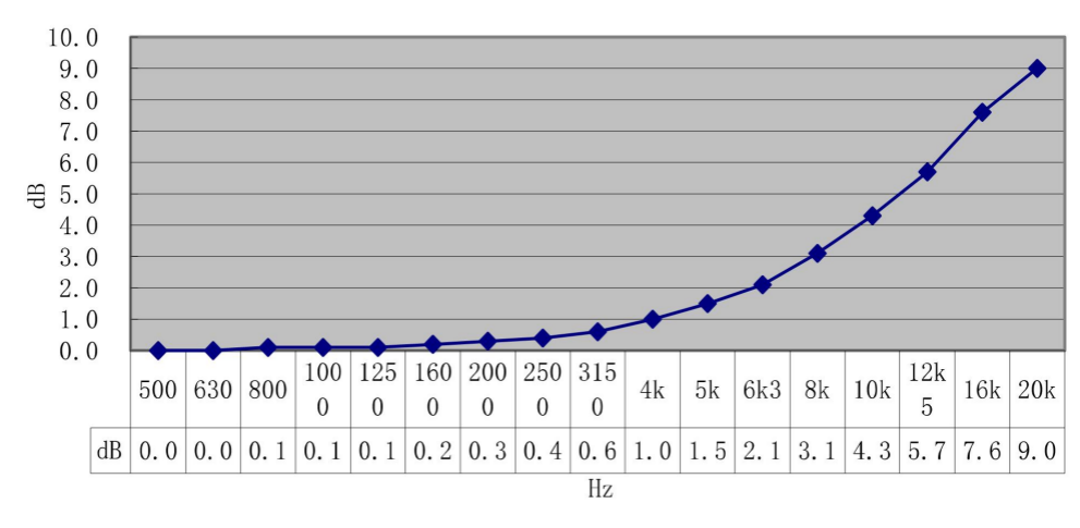 指向设为90°时的计权响应